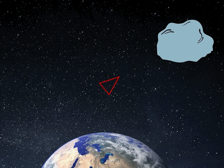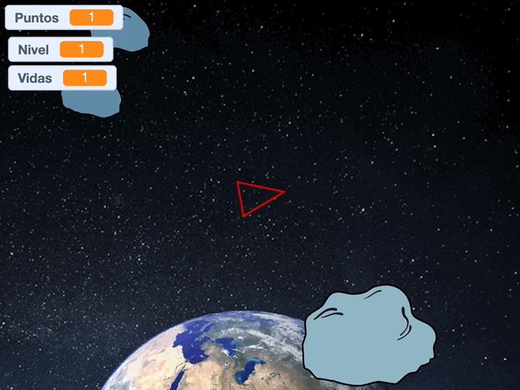 Estos dos asteroides también deberían moverse continuamente y rebotar en las paredes. El láser debería desaparecer al tocarlo.